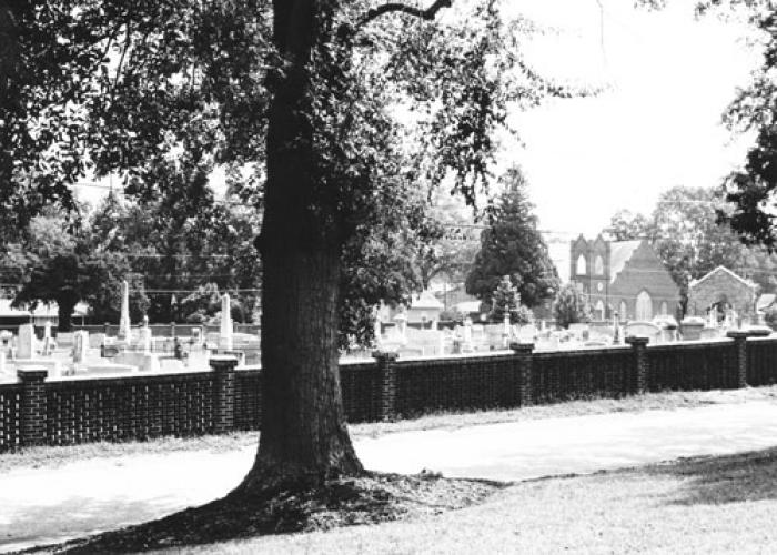 Magnolia Cemetery, sometimes known as City Cemetery, was established in 1871. It is an excellent example of a late nineteenth through mid-twentieth century cemetery reflecting typical burial customs and gravestone art during the period. The graveyard is laid out in a regular grid plan and contains approximately 1,600 to 1,800 graves. Grave markers are primarily granite or marble tablets, obelisks, square, or stepped monuments capped with urns. There also are several Confederate grave markers, some of which still feature cast iron Maltese crosses. Most family lots are delineated with stone coping, while only a few have decorative iron fence enclosures with entry gates. Burials date from 1872 to the present. A 1922 Gothic-influenced granite shelter contains three pointed arches on either side of an open-arcaded pavilion, and one pointed arch on either end. Magnolia Cemetery is significant as the second cemetery in Greenwood and for its association with many prominent local citizens, including the following: D. Wyatt Aiken, Andrew Alexander Blyth, William V. Blyth, John I. Chipley, Thomas White Cothran, William L. Durst, John K. Durst, Samuel Hodges, David Augustus Parker Jordan, Robert F. McClaslan, Creswell Archimedes Calhoun Waller, and John O. Willson. The granite shelter was dedicated to the memory of Nellie Screws, one of the first teachers at the Greenwood Graded School. Listed in the National Register June 9, 2004.