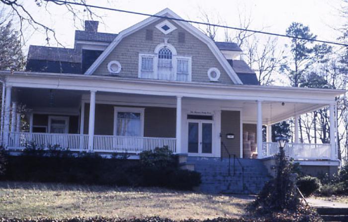 The Albright-Dukes House was built ca. 1904 as a residence for Dr. George C. Albright, a Laurens dentist. Dr. Albright purchased three adjoining lots from the Irby family at an auction in February 1904 and is believed to have had the house constructed shortly thereafter. The house is significant to Laurens as the city’s best example of the Dutch Colonial Revival style of architecture. Few houses of this style were constructed in the Upper Savannah region of South Carolina during the early twentieth century, and even fewer retain their architectural integrity. Notable features include its cross-gambrel roof; the shingled gambrel ends with Palladian windows; unusual fenestration, including stained glass, leaded glass, and lattice-paned windows; pedimented dormers; corner guards on the interior plaster walls; large, airy rooms; and an impressive foyer/stairhall. The house is sheathed in weatherboarding on the first story, with wood shingles in the gables. A single-story porch, supported by Tuscan columns with a simple balustrade, extends across the façade and portions of the side elevations. The Albright-Dukes House has had few alterations and retains integrity from the time of its construction. One outbuilding, a frame garage built ca. 1930, is included in the nominated acreage. Listed in the National Register November 18, 1986.