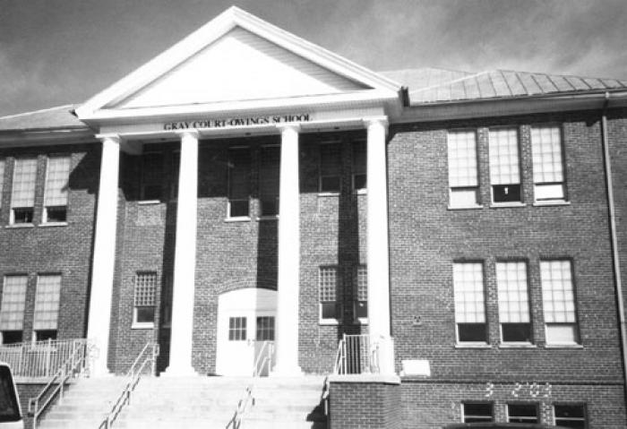 The Gray Court-Owings School is significant as an excellent and largely intact example of Colonial Revival style school architecture in the upstate and for its association with the growth and development in education in northern Laurens County in the first half of the twentieth century. The Gray Court-Owings School is a two-story central brick building constructed in 1914 with a flanking one-story brick-veneered high school building to the north and a one-story brick-veneered auditorium to the south, both built in 1928. When the flanking buildings, designed in the Colonial Revival style with Tuscan order porticos, were added in 1928, a two-story portico of the Tuscan order was added to the entrance of the 1914 building. Originally designed in the Renaissance Revival style with baroque massing, the building assumed a Classical or Colonial Revival appearance with the addition of the 1928 portico. The main building is accessed by a monumental stair with flanking wide cast stone-capping cheek walls. Each building has a hipped metal roof. In the 1930s a one-story frame potato house was built to help local farmers preserve their crops. This outbuilding contributes to the historic and architectural character of the property. Listed in the National Register April 21, 2004.