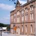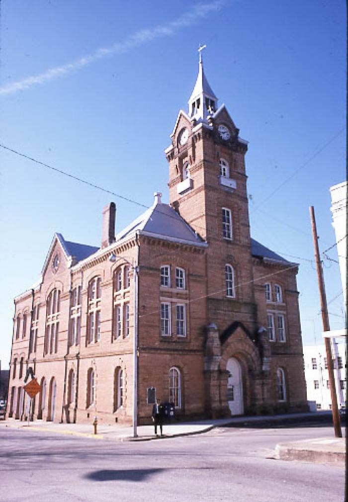 Located on a lot where John Leavell, among others, operated a tavern in the town’s earlier years, the ca. 1881 Newberry Opera House became a popular cultural center from the time of its dedication in 1882. Presented at the opera house were stage dramas, operas and operettas, minstrel shows, musical comedies and similar attractions which toured the country and were major features of the town’s cultural and social life. With the advent of movies, and the building of larger auditoriums in the city, the Opera House was used exclusively as a movie theater. The Newberry Opera House building is Romanesque Revival in design, with a tall steeple and a wide gable on the front side. Its bricks were handmade in Newberry. The parcade is sloping. The balcony is wide and also sloping. The building was, “in all likelihood, designed out of a pattern book, and shows the influence of Philadelphia architect Frank Furness.” Located on Newberry’s central square, the old building was the hub of cultural and civic activities for many years. Listed in the National Register December 2, 1969.
