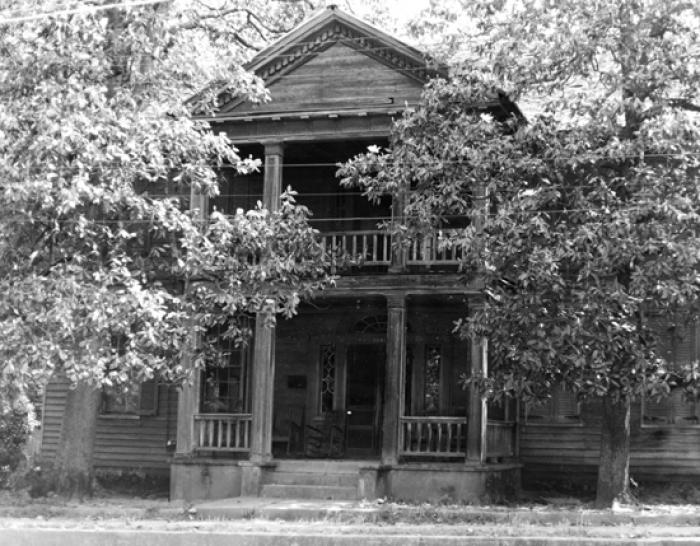 The Stewart House was built for Robert Stewart, prominent Newberry merchant, by builder Phillip Schoppert, who also constructed “Coateswood” for Chancellor Job Johnstone. Its unpainted weatherboard exterior with fine classical ornamentation makes it Newberry’s most intact historical dwelling. Built in 1842, the Greek Revival residence is a two-story rectangular frame dwelling with a pedimented double-tiered portico projecting from the façade. The raking cornice of the front pediment displays dentils. Plain square wood balustrades connect four square wood pillars on each porch tier. A molded architrave with tracery fan and sidelights frame each floor’s central doorway. A rear right addition of two stories extends into an ell. Listed in the National Register November 26, 1980. The Stewart House has since been moved. Removed from the National Register March 15, 2000.
