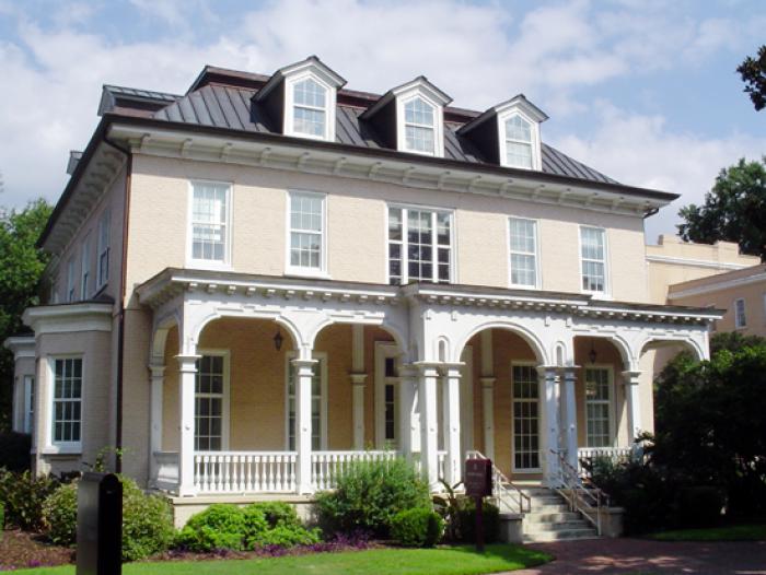 (University of South Carolina Historic District) Chartered in 1801 as South Carolina College, opened 1805, and re-chartered as University of South Carolina in 1865, the institution reflects the ambitions and fortunes of the state. A tree-shaded quadrangle centers the Old Campus District. The buildings bordering the quadrangle present balanced grouping and harmony of design, austere simplicity of early Republican architecture. A brick wall erected in 1835 surrounds them. Landmarks include Rutledge College (ca. 1805) and Maxcy Monument (ca. 1827), both designed by Robert Mills; DeSaussure College (1809), designed by Edward Clark; South Caroliniana Library (ca.1840), the oldest separate college library building in the United States; and the Gymnasium, designed by Jacob Graves in 1855 as a chapel. There are over twenty other contributing campus institutional buildings and numerous contributing landscape features. Listed in the National Register June 5, 1970.