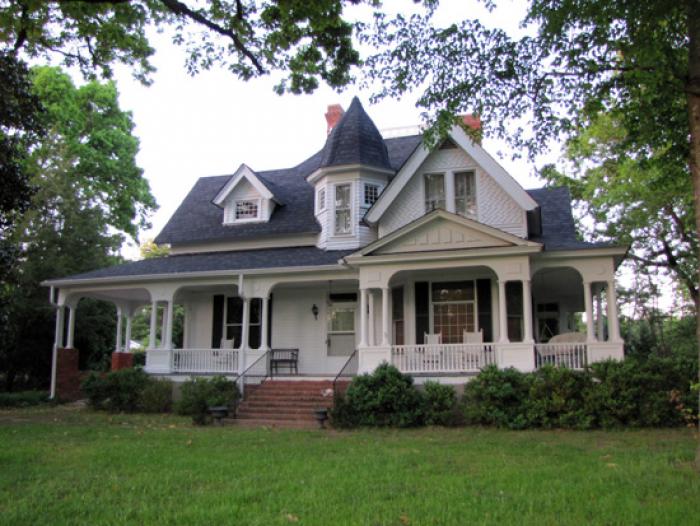 The William Dixon Fowler House, constructed ca. 1901 by William Dixon Fowler, is significant as an excellent example of late Queen Anne style architecture in rural Spartanburg County and upstate South Carolina. It is a one-and-one-half story house set on a two-acre property shaded by maturing trees along with manicured shrubs and flowering plants. The backyard includes a contributing Smoke House (ca. 1901) with a gable-front, v-crimp metal roof and wide flushboard siding. Queen Anne architectural design is characterized by the steeply pitched roof, asymmetrical design features, front facing gable dormer window, the shingled tower and railed roof balustrade. The central placement of the shingled tower in the overall design composition of the Fowler House and the classical elements of the porch and interior hint at the transitional character of the late Queen Anne toward the Classical Revival. Additional features include the wrapped porch, single paned, double hung windows and imbricated wood shingle siding. The interior of the home displays additional late Queen Anne characteristics including fireplaces with detailed mantels, transom windows atop the doors, and dark stained woodwork throughout the house. Family tradition states that William Dixon Fowler built the house himself with help from friends and family. The house appears to follow one of the many house patterns by architect George F. Barber. Barber had thousands of his designs built throughout North America. It is estimated that Barber was responsible for approximately 20,000 sets of house plans over a twenty-five-year career. Listed in the National Register February 8, 2012.