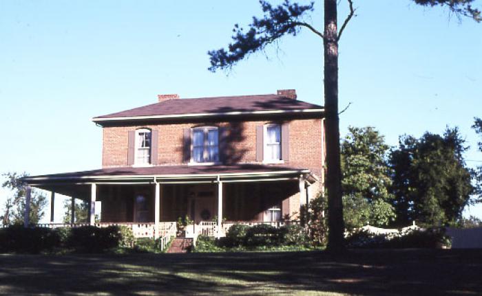 The Mack-Belk House, an example of Late Victorian architecture with Italianate influences, consists of a one-story rear section built in the 1860s and a two-story main block built about 1890. The house shows influences of the Italianate style, including paired windows in the central bay, segmental arches, wide roof overhangs, and a hip roof. There is a one-story hip-roofed porch across the façade and wrapping around a portion of the east elevation. The porch has chamfered posts and a decorative balustrade. The brick is laid in six-to-one common bond. The house has been associated with the Mack and Belk families for about one hundred years. It was occupied by Dr. Edward Mack, a native of Fort Mill who was a Presbyterian minister that later taught for a number of years at the seminary located in Richmond, Virginia. After his death, the house was owned by his sister, Mrs. Elizabeth Mack Belk. Her husband, Thomas Heath Belk, operated a mercantile store on Fort Mill’s Main Street and was part of the Belk family which was developing a chain of stores. Listed in the National Register June 11, 1992.
