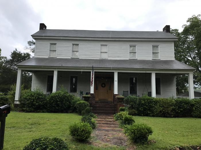 The Spring Park Inn is a two-story five-bay frame I-house with exposed end chimney and a full width front porch constructed c. 1820. Originally built as a private residence, the home transitioned to use as an inn by 1852 and continued housing travelers until 1941. The house that Montgomery acquired from the Bradley’s in 1850 was already situated along an important thoroughfare. Labeled as the road “To Saluda Gap” on the 1825 Mills Atlas, the Buncombe Road was a primary route into western North Carolina, including to other prominent resorts in that region. Indeed, it was the existence of these resort communities that helped spur additional infrastructure development in this part of Carolinas. Because the resorts were frequented by Lowcountry visitors in search of more salubrious climates, those sojourners were willing to deploy their often considerable political influence to support the development of roads, schools, and churches in these western outposts. The Buncombe Road, where the Spring Park Inn was located, was so named because it was the road to Buncombe County, North Carolina and was part of the extended transportation network that connected Lowcountry planters with the resort communities in the western Carolinas. Later, rail service would bring visitors to the Spring Park Inn. Owner Robert Anderson conveyed one and a half acres of land in front of his home for the construction of railroad platform for loading and unloading passengers and freight in 1889. This shrewd maneuvering meant that rail passengers arriving in Travelers Rest were literally delivered to Anderson’s door. Listed in the National Register February 1, 2018.
