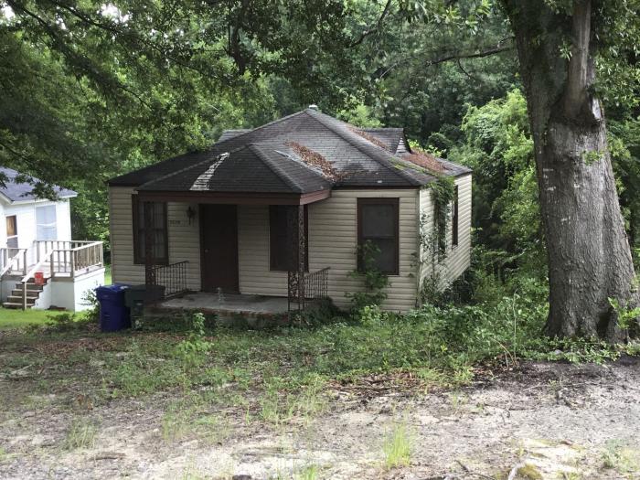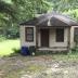 Pyramidal Cottage. Front porch has hip roof supported by decorative metal posts. 6/6 wood windows. Split level foundation.
